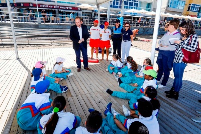Durante la actividad, los escolares se entrevistan con los agentes de la Policía Turística, reciben los consejos del socorrista de Cruz Roja y las indicaciones del personal responsable de los balnearios. Una foto de grupo en el mural, ubicado en Playa Chica, rodeado por viejas, carmelitas, gueldes y cabosos, pone punto y final a esta experiencia.