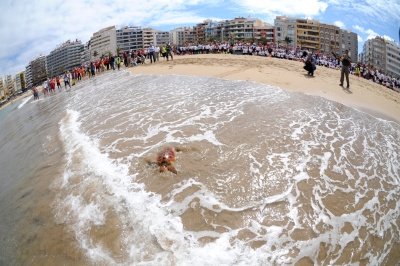 Una de las actividades más simbólicas de la jornada en la playa ha sido la suelta de una tortuga que ha vuelto a su hábitat natural, a la mar, ayudada por los escolares. La tortuga, que fue rescatada el pasado mes de mayo, en el sur de Gran Canaria, se ha recuperado de sus heridas, provocadas por la basura en el mar, en el Centro de Recuperación de Fauna del Cabildo de Gran Canaria.