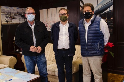 El coordinador técnico de Desarrollo Económico, Soberanía Energética, Clima y Conocimiento del Cabildo de Gran Canaria, Raúl García Brink, y el concejal de Movilidad y Ciudad de Mar del Ayuntamiento de Las Palmas de Gran Canaria, José Eduardo Ramírez, se reunieron esta semana con Luis Ibarra, presidente del Puerto de Las Palmas, para concretar las acciones que se van a desarrollar desde la entidad en el marco de la feria, que volverá a celebrarse en la Plaza de Canarias del 20 al 22 de mayo.