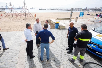 Los concejales de Ciudad de Mar y Aguas, José Eduardo Ramírez y Roberto Santana, respectivamente, recorrieron esta mañana la playa acompañados de responsables de EMALSA para hacer un seguimiento de los trabajos en la red de alcantarillado. En este sentido apuntaron que el ayuntamiento “ha actuado y se ha ocupado desde el primer momento en garantizar la seguridad de los bañistas y usuarios de la playa, localizar el origen de esta situación anómala y poner en marcha las medidas correctoras necesarias”.