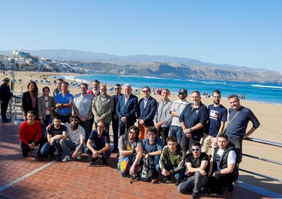 Los concejales de Empleo, Pedro Quevedo, y de Ciudad de Mar, José Eduardo Ramírez; el responsable de comunicación de la Federación provincial de la pequeña y mediana empresa del Metal y las Nuevas Tecnologías de Las Palmas, FEMEPA, Víctor Rubio, y el presidente de la Federación de Vela Latina Canaria, Bernardo Salom, han dado la bienvenida este lunes a los 12 estudiantes que, con tres docentes, participan en este programa formativo.