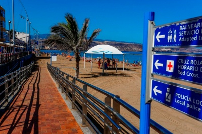 Cruz Roja seguirá ofreciendo el servicio de baño asistido, de 11.30 a 18.30 horas, para personas con discapacidad y necesidades especiales, en la zona certificada de Accesibilidad Universal, junto al balneario de Tomás Miller, en la Playa de Las Canteras.
