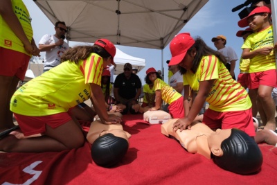 La playa de Las Canteras se ha convertido por segundo año consecutivo en el escenario para el desarrollo de una actividad que conmemora el Día Mundial para la Prevención de los Ahogamientos. Una quincena de niños y niñas de entre 8-13 años recibieron una iniciación a los Primeros Auxilios y RCP de la mano de profesionales en seguridad acuática e hicieron un recorrido para visibilizar los diferentes peligros y recomendaciones. Además, ofrecieron mensajes de seguridad por la megafonía de la playa capitalina, durante toda la jornada.